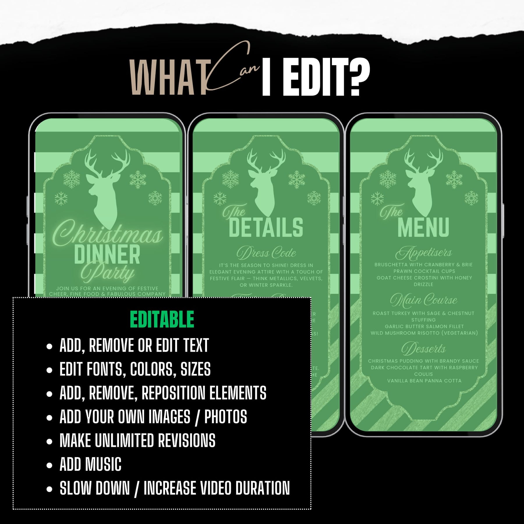 • 1 Editable Invitation with Details & Menu Canva Template (9:16 vertical)
