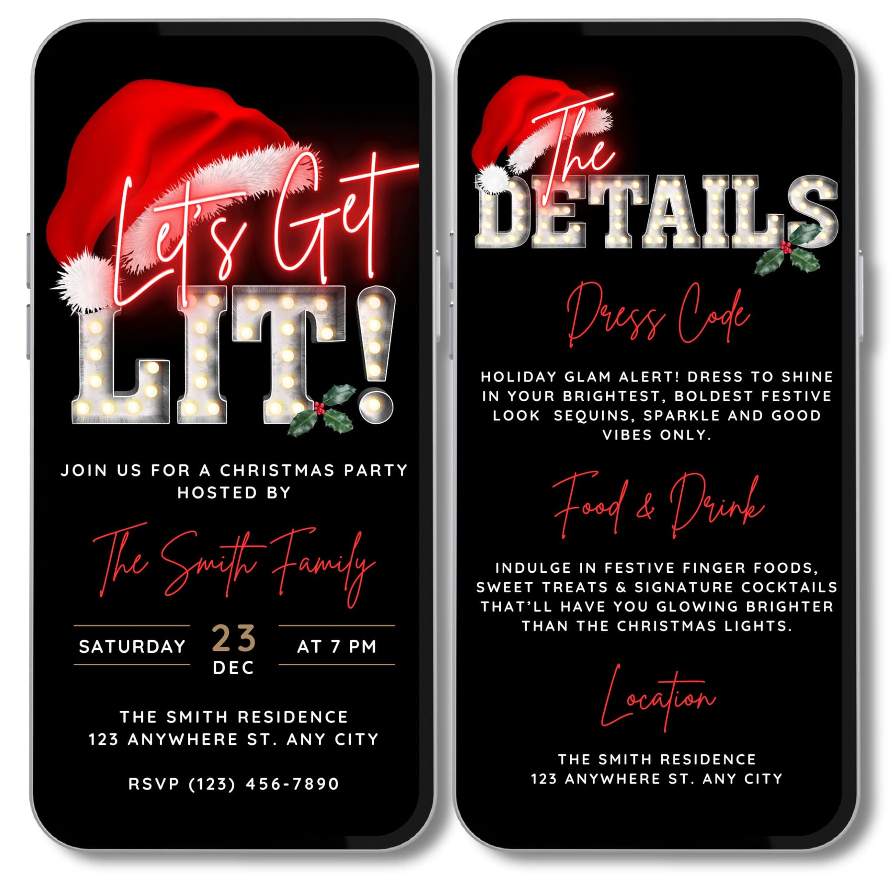 🎄 Let’s Get Lit Christmas Party Invitation with Details