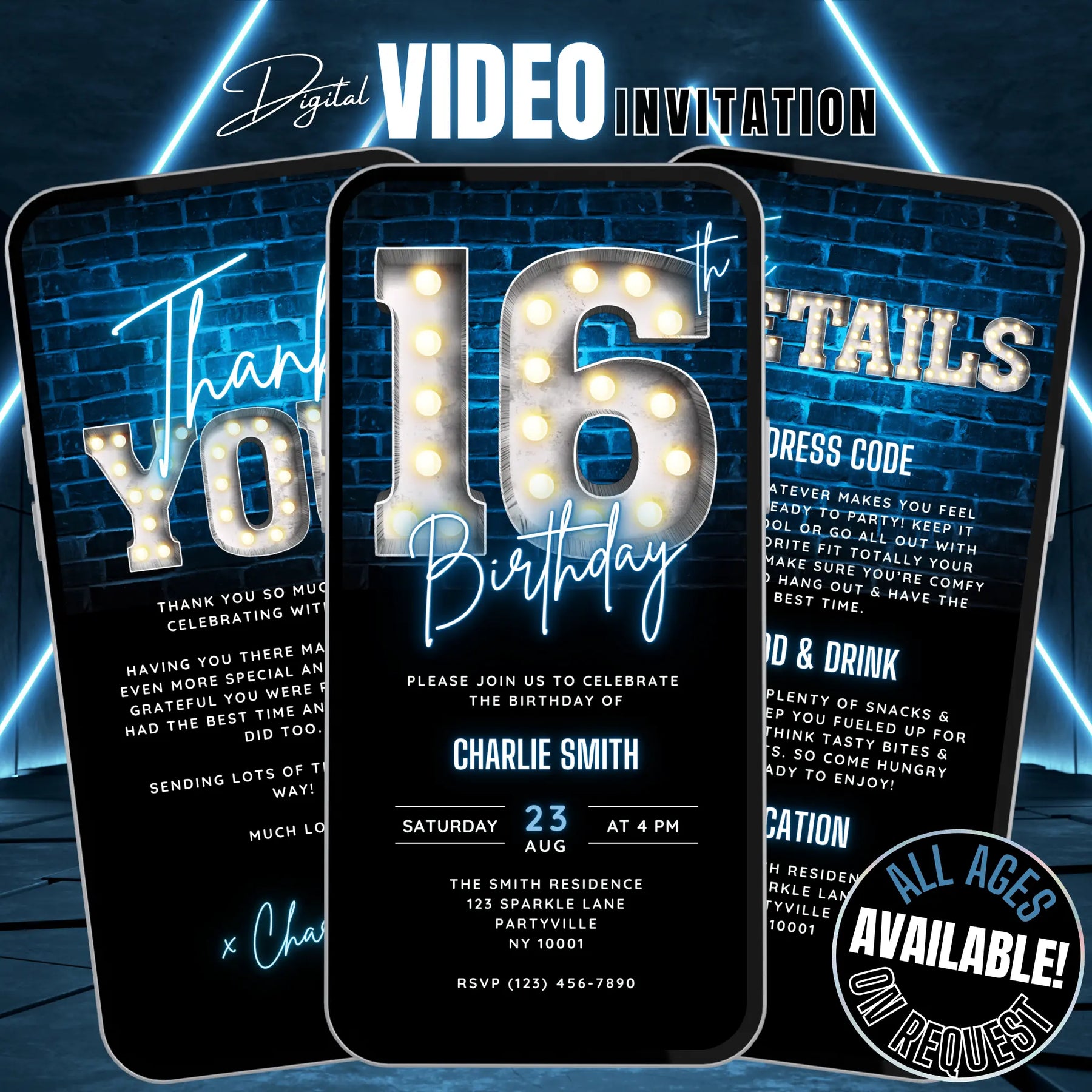 Make your 16th birthday unforgettable with this customizable sweet 16 video invite! Download now and start personalizing.